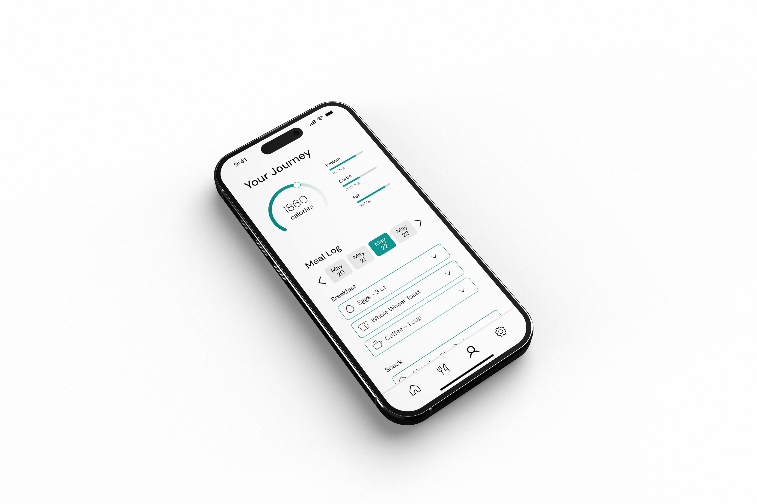 - Objective: To design a nutrition tracking app that uses AI to suggest personalized meals based on users’ dietary preferences and goals. The app also allows users to track their caloric intake, focusing on simplicity and an intuitive user experience.